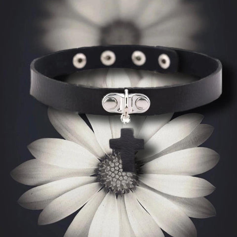 Black Faux Leather Gothic Collar with Central Cross Charm.