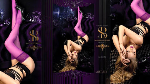 From the Ballerina Secrets Collection. This is a lovely pair of hold ups in Granata (a lovely magenta colour). The holds ups have a smooth design with lovely matching lace top. An exclusive product which is delicately perfumed. Available in two sizes. The item arrives in beautiful Ballerina packaging.