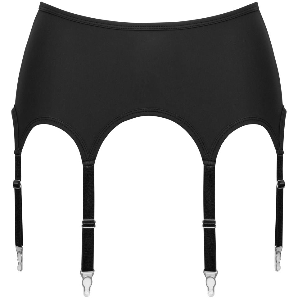 Purist elegance in a sophisticated matte look! 11 cm high suspender belt from Cottelli LINGERIE in a sophisticated black matte look with silver-colored metal details. Soft and stretchy for high wearing comfort. 8 suspenders in total. With hook fastening at the back.