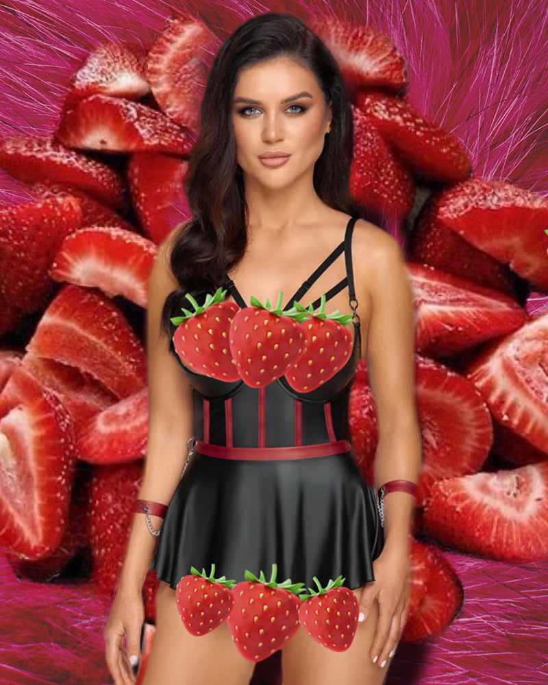 - Set: Longline bra, crotchless thong and 2 arm cuffs