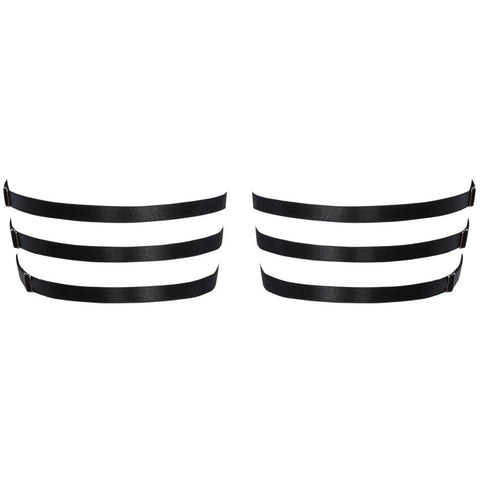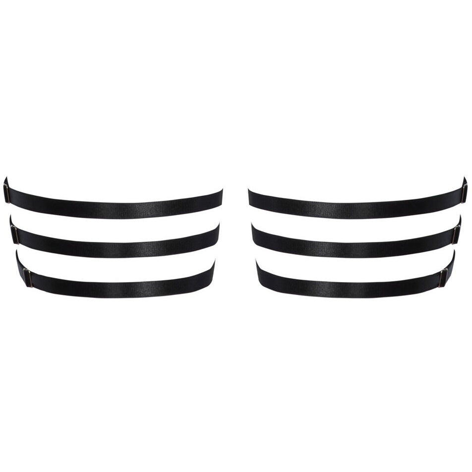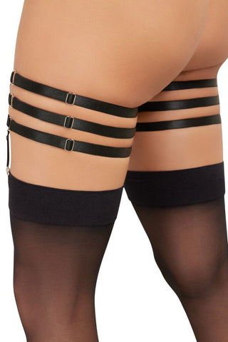 Extravagant leg decoration! The black, triple garters from Cottelli ACCESSORIES have removable suspender straps. They are made out of soft stretchy straps that have a beautiful shine. They also have silver-coloured rings and decorative rhinestones. They are adjustable for a perfect fit. The removable suspender straps are also adjustable for a perfect fit as well.