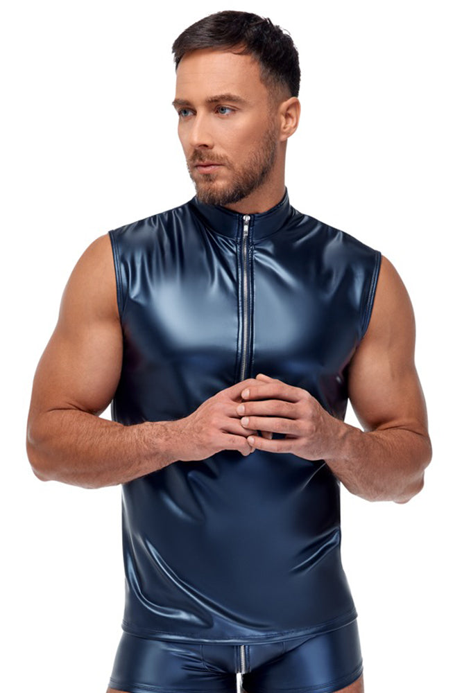 Elegant metallic matte look that invites touching! Blue shirt from NEK in a stylish metallic matte look. Sleeveless, tight and close-fitting. With a small stand-up collar and a silver-coloured zip at the front. Soft and stretchy for the highest comfort.