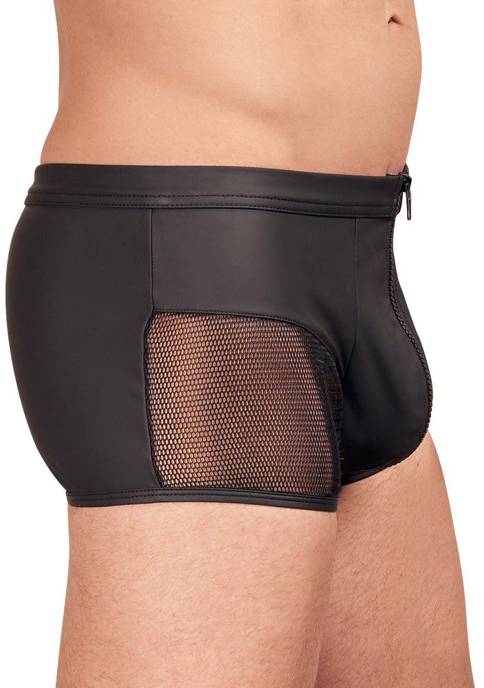 An exclusive design that is extremely comfortable to wear!Black pants made out of emphasising matte look material with transparent net inserts at the front of the legs. There is a practical zip at the front that can be unzipped quickly for erotic fun. Wonderfully stretchy pants that are extremely comfortable to wear.
