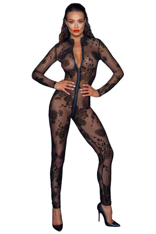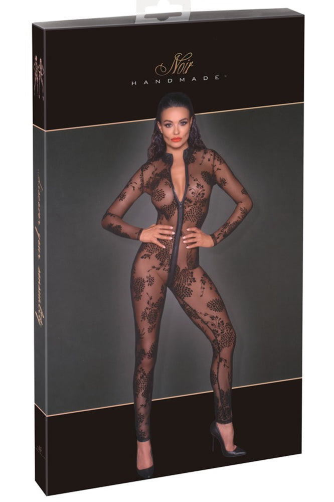 Experience the ultimate in sensual elegance with the Noir Handmade Jumpsuit. This breathtaking undergarment is designed to captivate and tantalize, featuring a transparent design, long sleeves, long legs, and a daring 3-way zip.