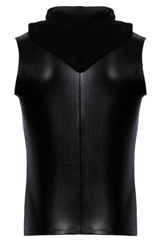 Noir Handmade Snake Skin Pattern, Wetllook, Sleeveless Zip-Up, Hoodie, Top.