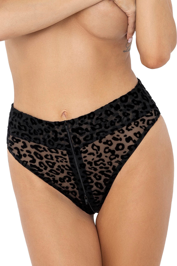 These high-waist leopard flock panties have a 3-way zipper for maximum access and comfort. They are perfect for when you really want to spice things up.