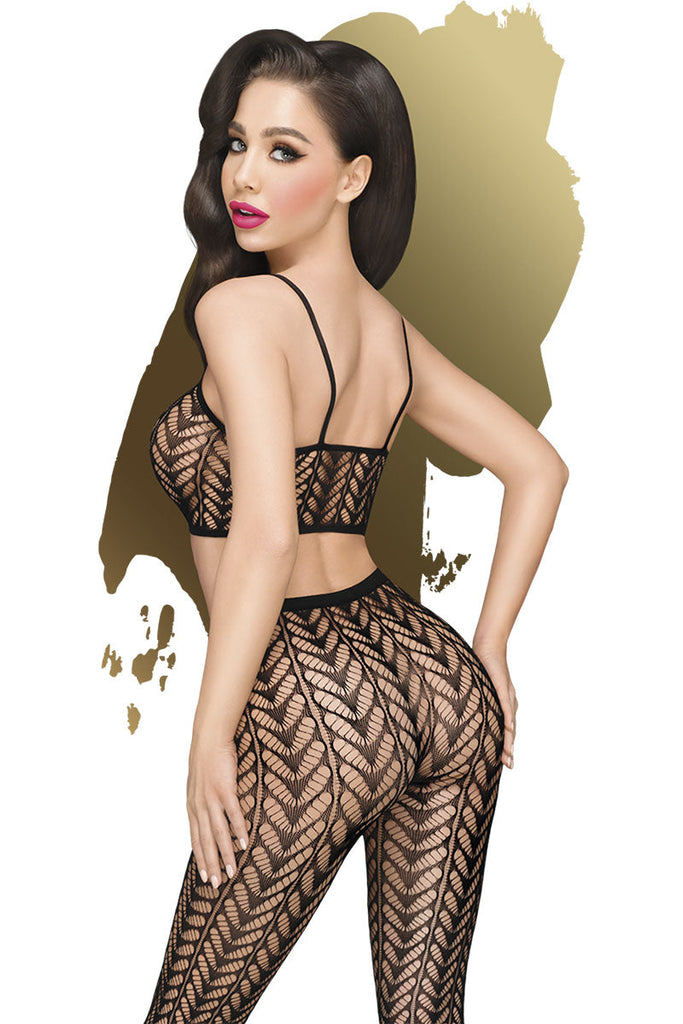 Work it with a bustier and matching tights in an elegant crochet design. The spaghetti straps, which skillfully accentuate your décolleté in combination with the square neckline, ensure optimal support. The pantyhose nestles snugly against your body and emphasizes your bottom beautifully. The crochet pattern and the cropped design make you look both playful and sexy.