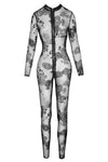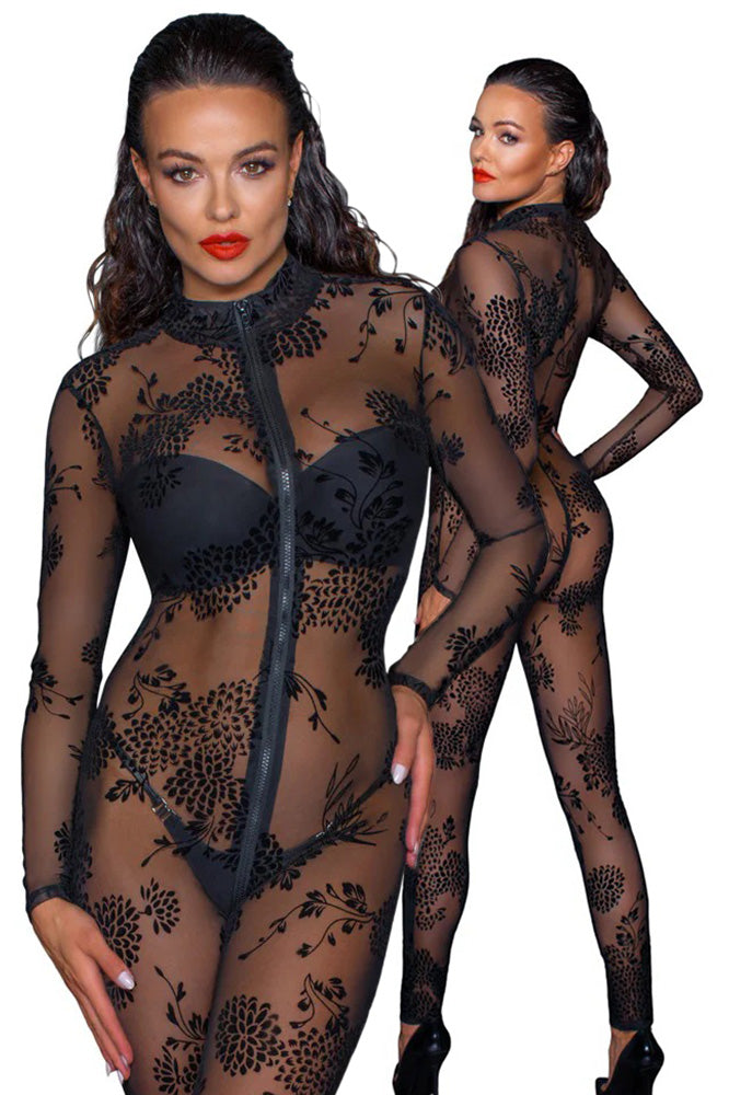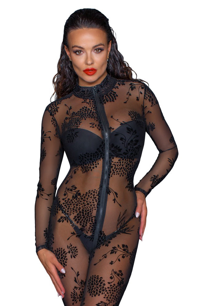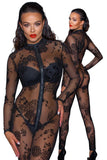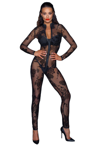 Experience the ultimate in sensual elegance with the Noir Handmade Jumpsuit. This breathtaking undergarment is designed to captivate and tantalize, featuring a transparent design, long sleeves, long legs, and a daring 3-way zip.