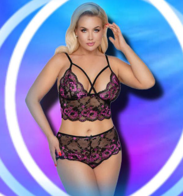 Cottelli Curves Plus Size Black Pink Lingerie Set.