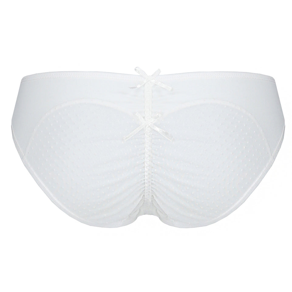 A bit of delicacy in the form of timeless white and sophisticated piquancy thanks to the unusual finish of the back of the underwear. The translucent material adds a sophisticated character. The panties are characterized by the excellent quality of the material, which ensures high wearing comfort.