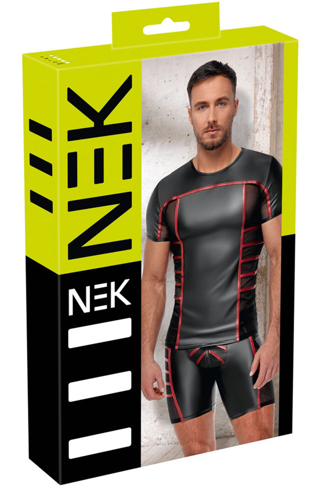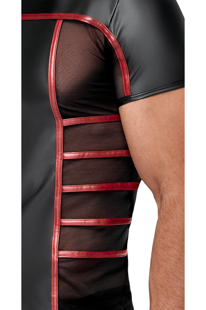 Exciting mix of materials - exciting style! Close-fitting, short-sleeved shirt from NEK in a black matte look with contrasting red stripes. Transparent fine mesh inserts on the sides and under the arms. Soft and stretchy all-around for maximum comfort.