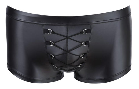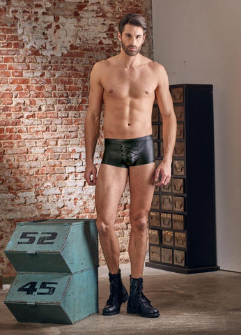 Striking male trend look! Classy, black pants in a stylish matte look with exciting lacing over the pouch. Fantastically elastic for a perfect fit and extremely comfortable to wear.