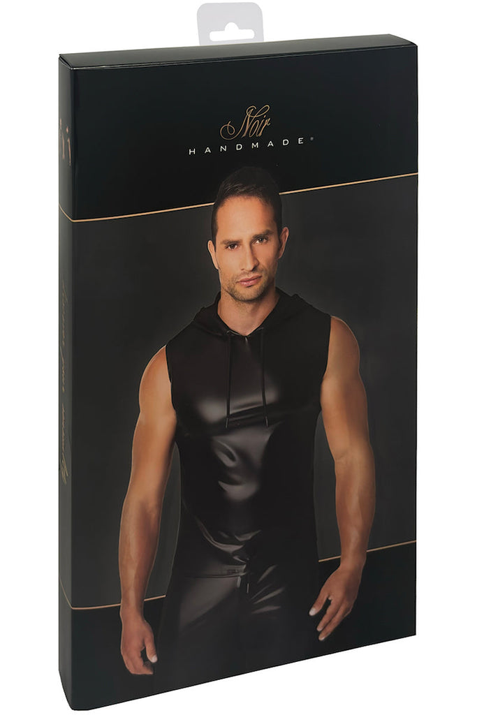 Noir Handmade, sleeveless hoodie, wetlook hoodie, women's fashion, edgy fashion, modern fashion, power wetlook, hoodie, comfortable hoodie, stylish hoodie, festival fashion, urban fashion.