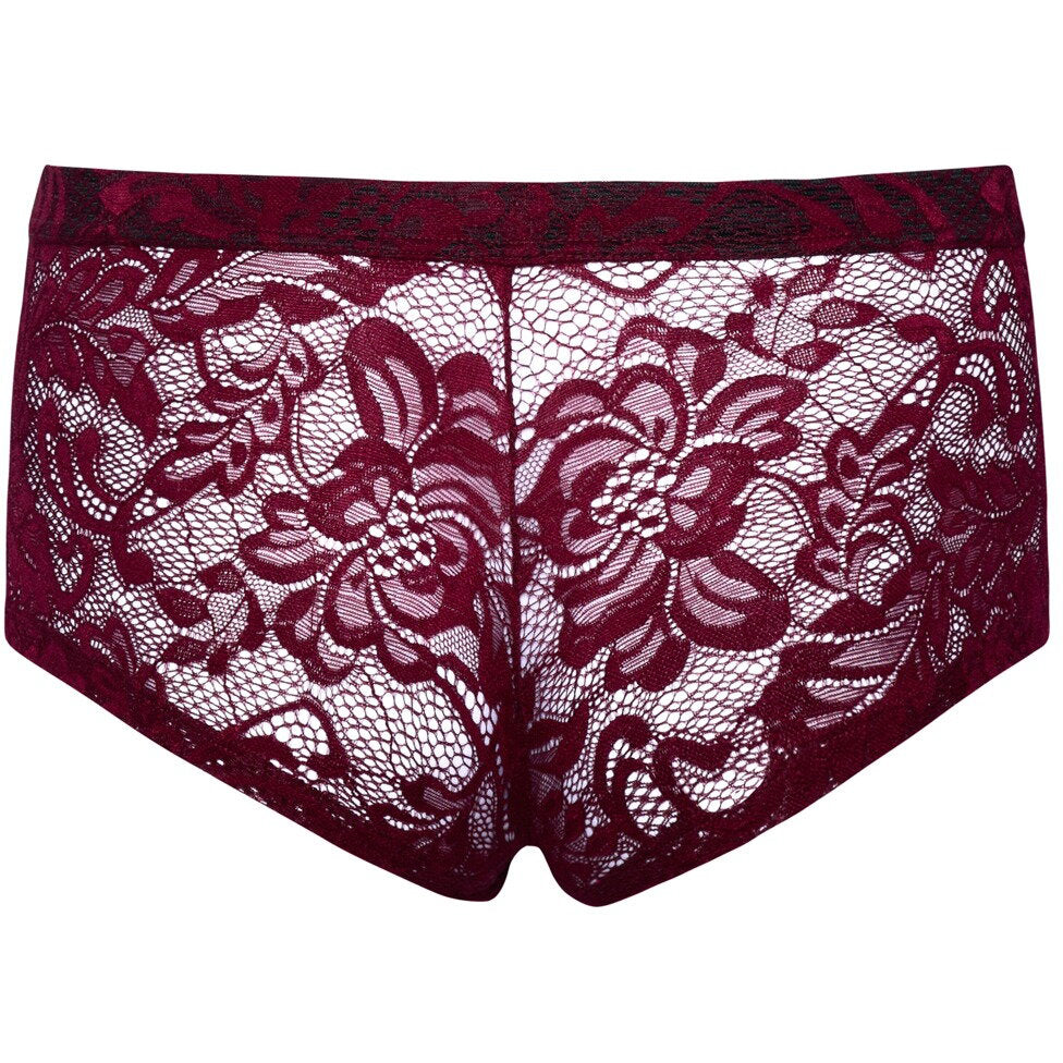 Transparent pants in a lace look! Emphasising pants from Svenjoyment that are made out of dark red floral lace with a stretchy, fabric-covered waistband. IT is soft and stretchy for an extremely comfortable fit.