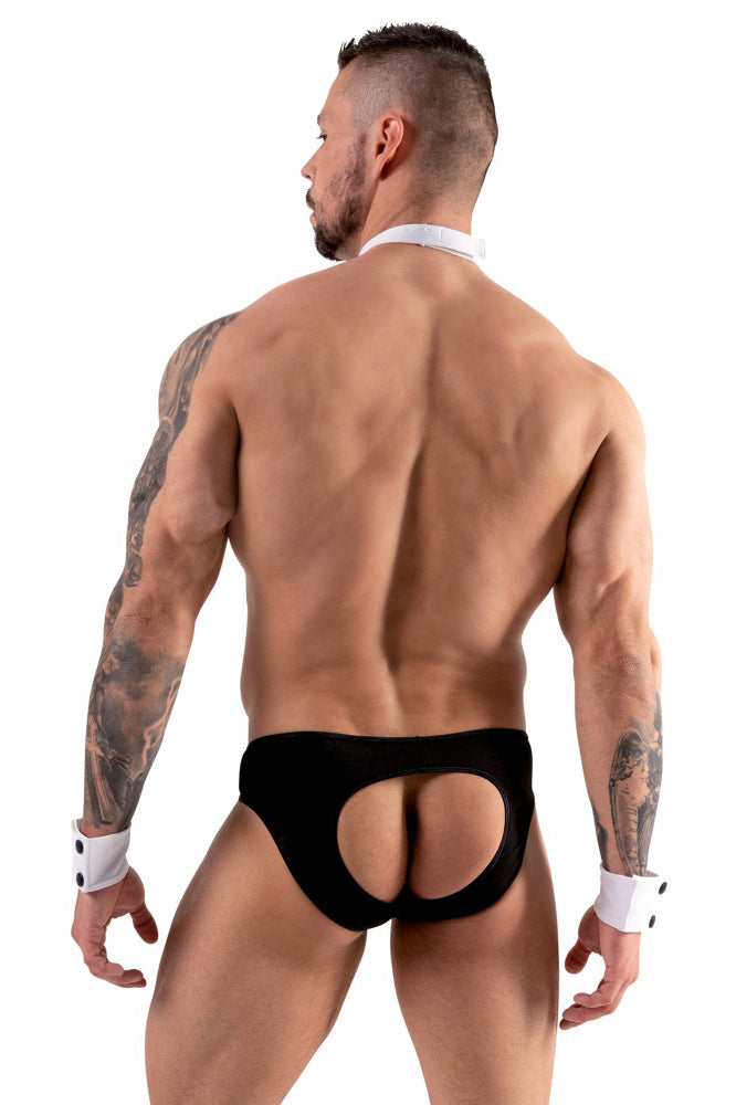 - Set: bumless jock briefs, 2 cuffs and bow tie