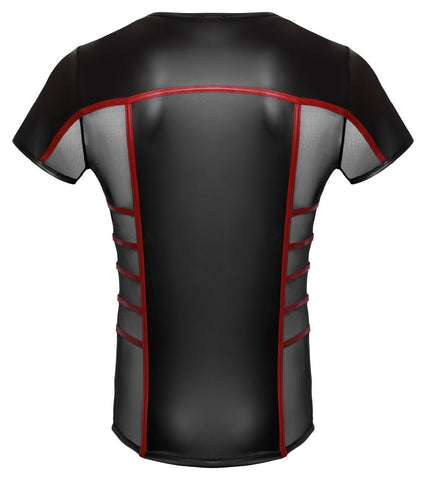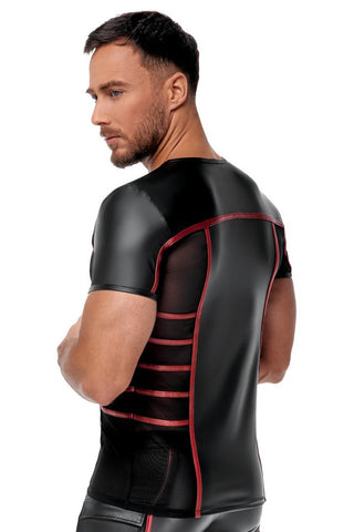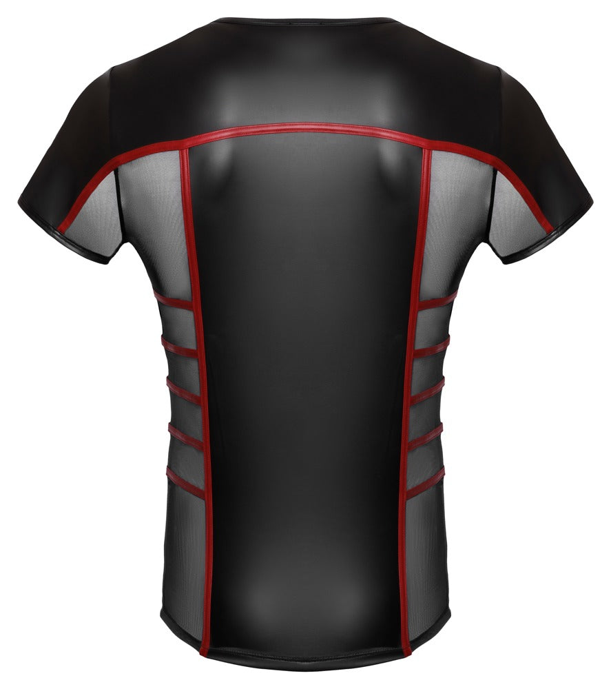 Exciting mix of materials - exciting style! Close-fitting, short-sleeved shirt from NEK in a black matte look with contrasting red stripes. Transparent fine mesh inserts on the sides and under the arms. Soft and stretchy all-around for maximum comfort.