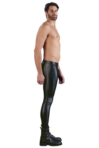 Cool biker look - freely combinable! Elegant slim-fit trousers in a matte look, big side pocket, stitched straps, rivets and rings. Pleasantly elastic and extremely comfortable to wear. The silver-coloured zip at the front completes the rock and roll appearance.