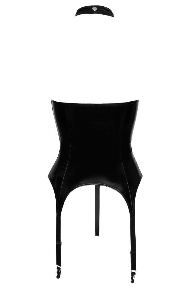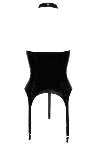 Embrace a provocative, high-shine style with the Black Level Vinyl Basque and Thong Set. This two-piece ensemble is designed to make a statement, featuring a basque with a large front cut-out and a matching thong.