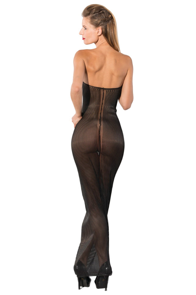 The long strapless tube dress has a striped latex print in a sexy open pattern on a transparent knitted fabric that is highly elastic. The material is stretchable and flexible, which will ensure great wearing comfort and a unique look, following all the body curves smoothly. This printed Datex dress is another outstanding item from the Guilty Pleasure Fetish Wear collection.