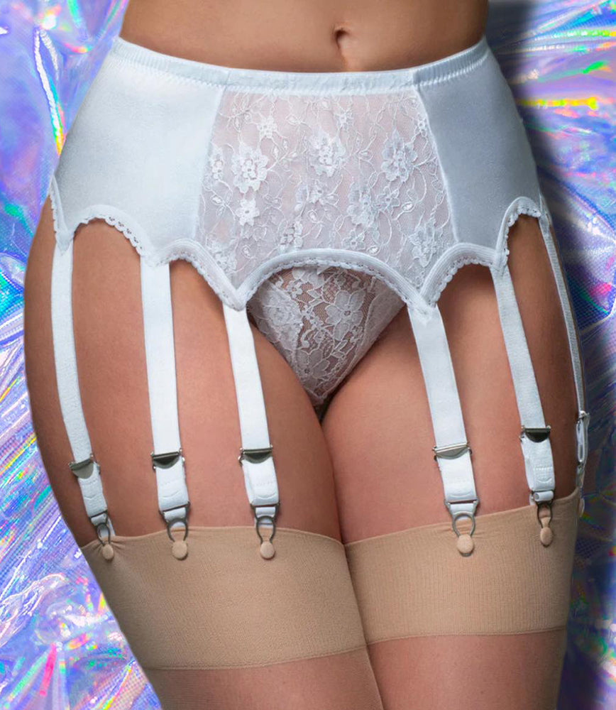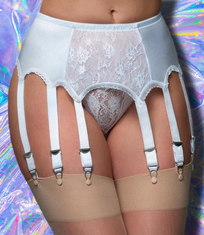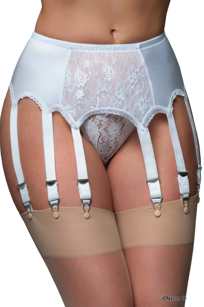 10 Strap Suspender Belt Lace Front Panel. Our 10 strap suspender belt with lace front panel also comes with our high quality metal clips and adjusters. Which mean they are durable for long life. The suspender clips which click into place on your stockings mean they will only let go of your stockings when you decide.