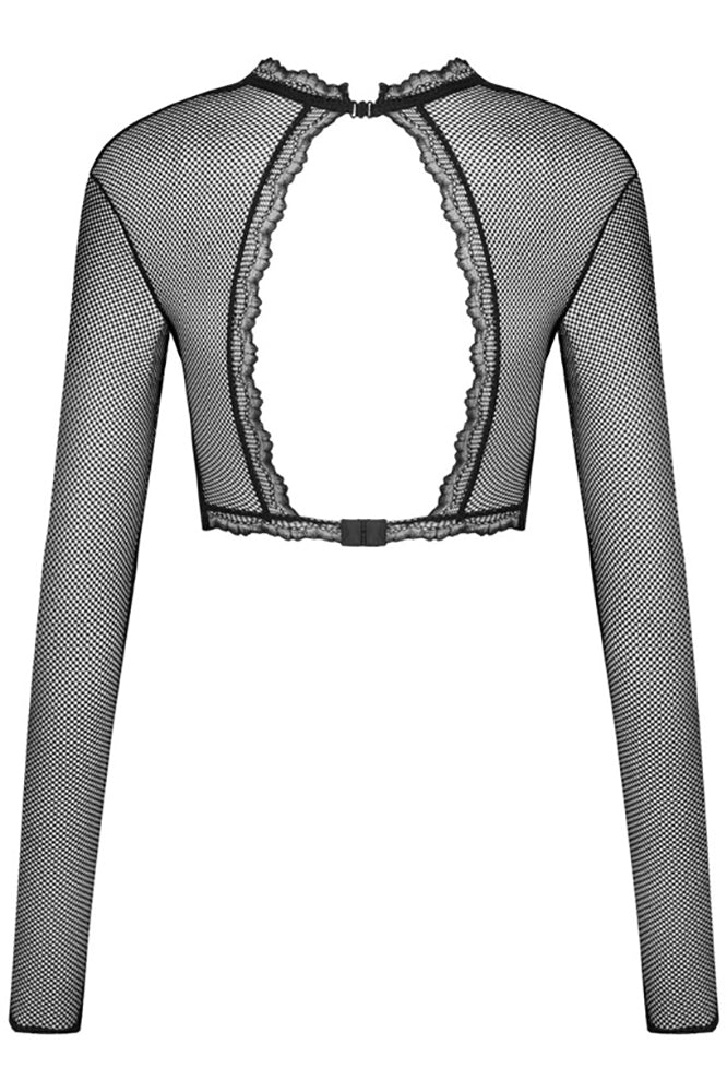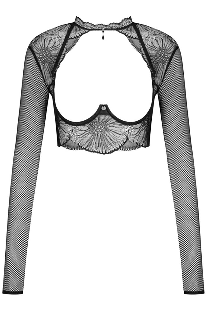 You could not possibly give this top only a fleeting glance! Long sleeves, cut-out on the back and open cups! This is the kind of lingerie that will draw you like a moth to the flame, if you’re not afraid to play with fire! The top combined with a bra and panties from the same collection is a hot, sexy, explosive mix! Will you let yourself be tempted?