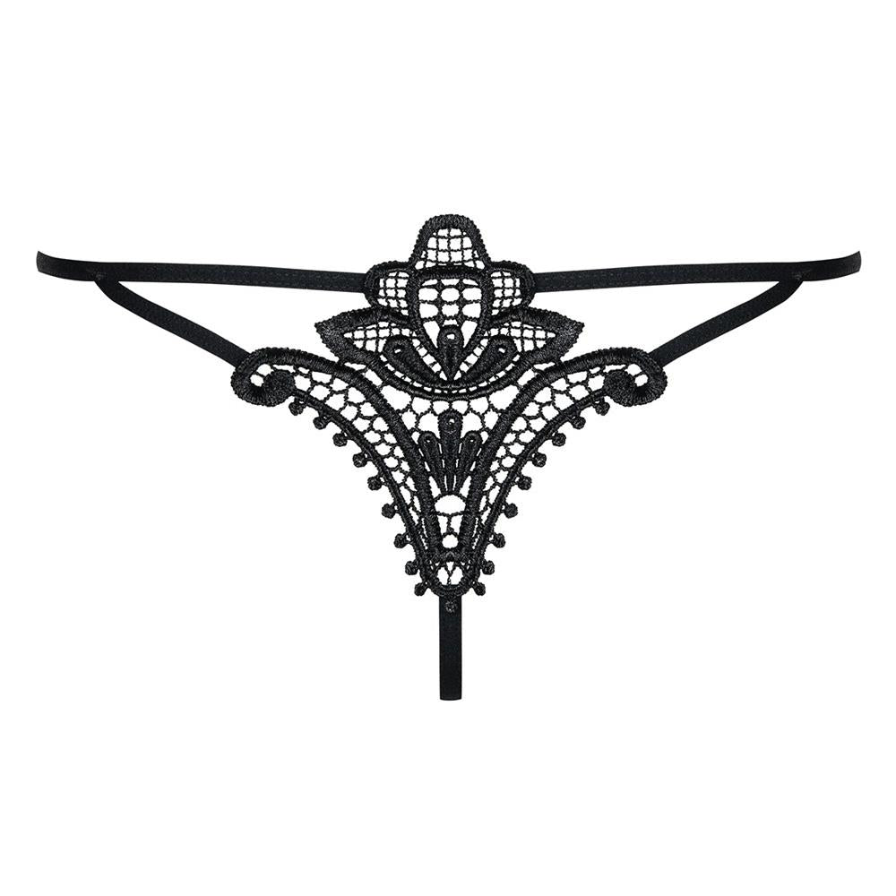 Hot string for a sexy bum! Captivating string with a simple front and a delicate embroidery at the back. With stretchy straps on both sides. Black.