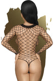 The seductive thong lingerie is made of coarse mesh and hugs the body closely. The halter neck offers a perfect fit, while the high-necked design gives you a scandalous, dominant look. The long sleeves suggest you mean business, and cheekily round off the revealing design.