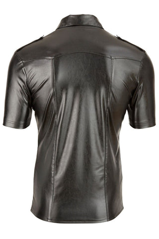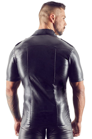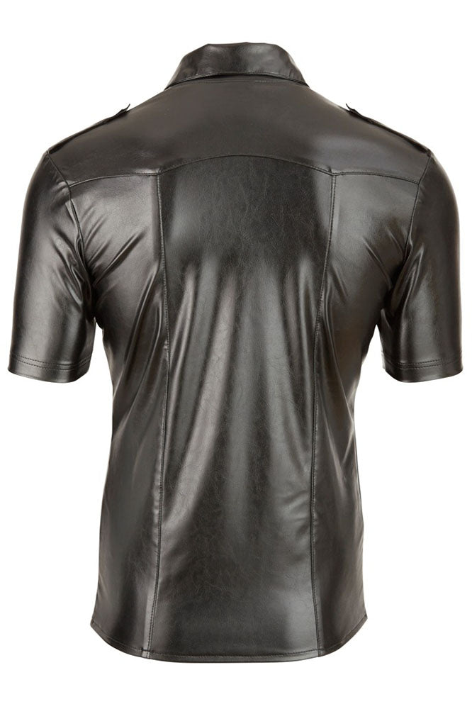A stylish look for confident guys! The row of press studs, epaulettes and chest pocket are the eye-catchers on this shirt. The shirt is made out of shiny black imitation leather. It is slightly fitted at the waist and emphasises muscles. It can also be worn with jeans!