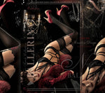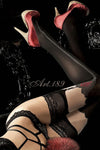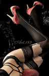 Stunning black hold ups with faux suspender design. Delicate detailing around the top and down the side of the leg in red and black, giving the illusion of a zip running the full length of the leg. All items come in branded Ballerina packaging.