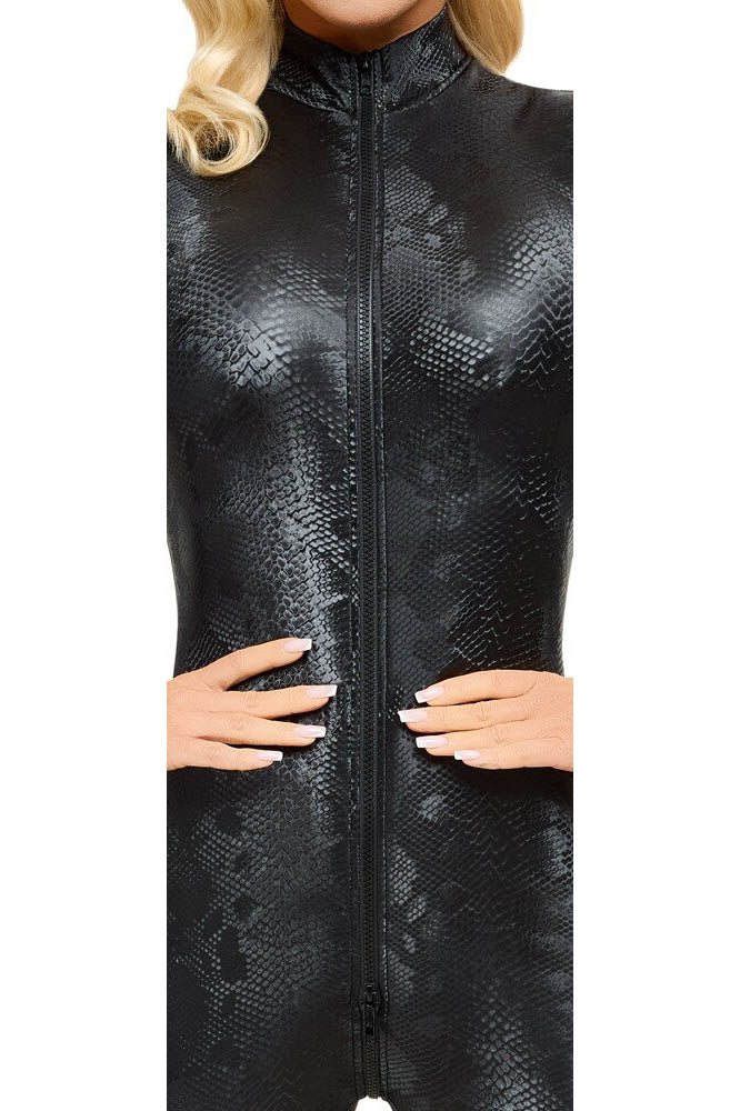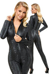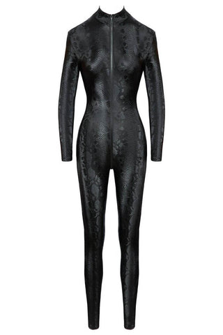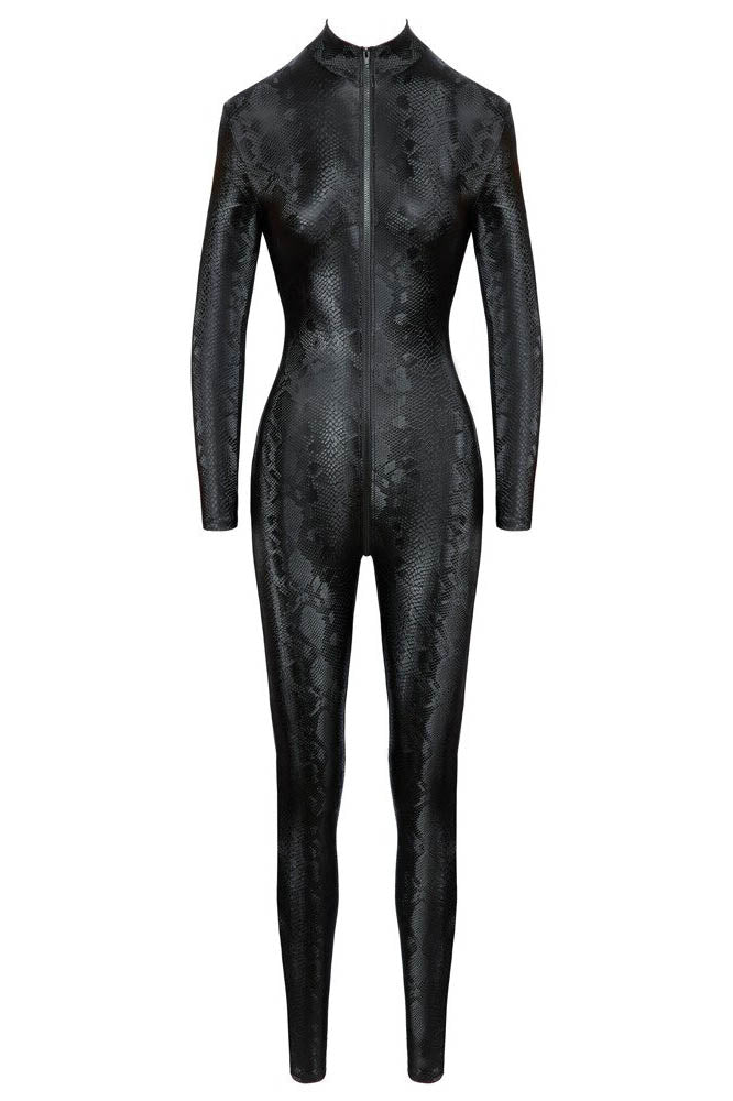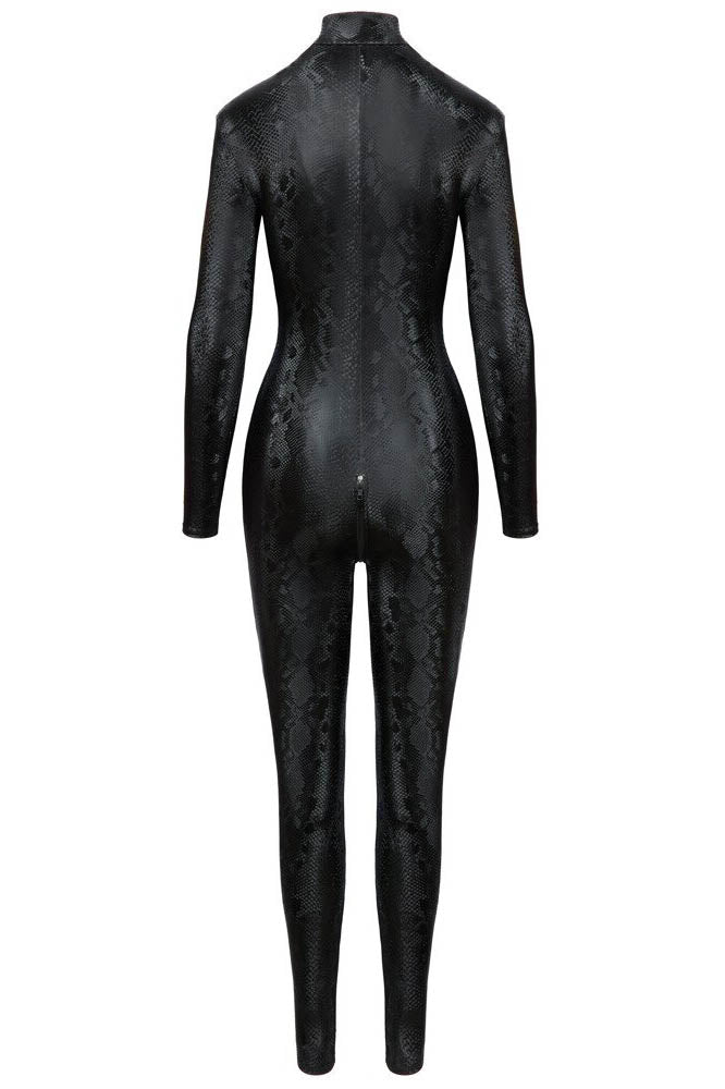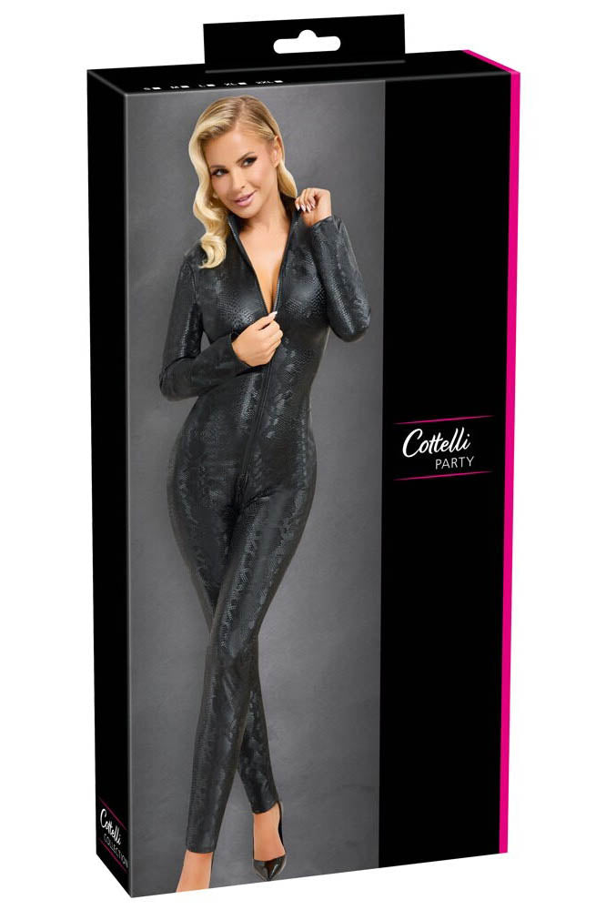 Snakeskin from head to toe! The skin-tight, tapered long-sleeved jumpsuit from Cottelli PARTY has a grey snakeskin pattern and fits like a second skin. It is also soft and stretchy for maximum comfort. The 3-way zip is both practical and erotic. The zip starts at the small stand-up collar, goes over the crotch and stops at the top of the buttocks. It can be zipped up and unzipped in various places.