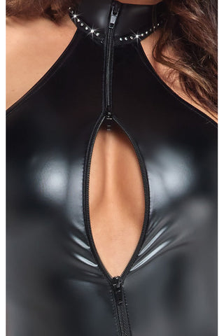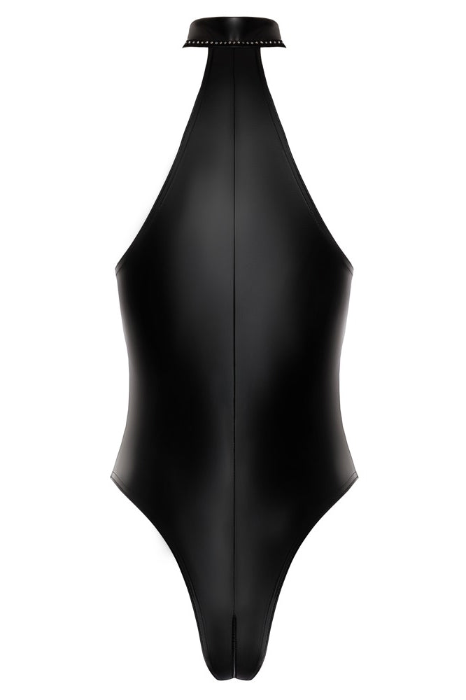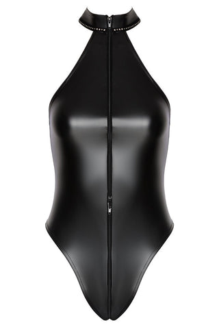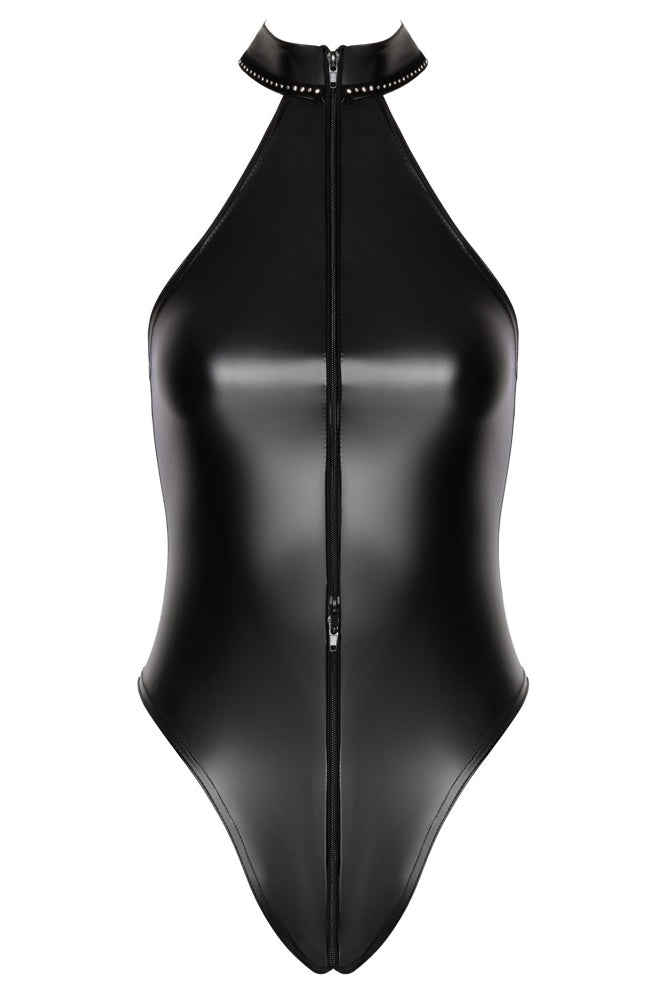 Exclusive style in cuddly powerwetlook! Accentuating Body from Noir in black powerwetlook – fits like a second skin. Soft and stretchy for maximum comfort. Close-fitting off-the-shoulder style with sparkling rhinestones on the stand-up collar. The full-length 2-way zip runs from the collar through the crotch to above the bottom. Extra-high leg cut-outs show off the bottom and legs in an exciting way.